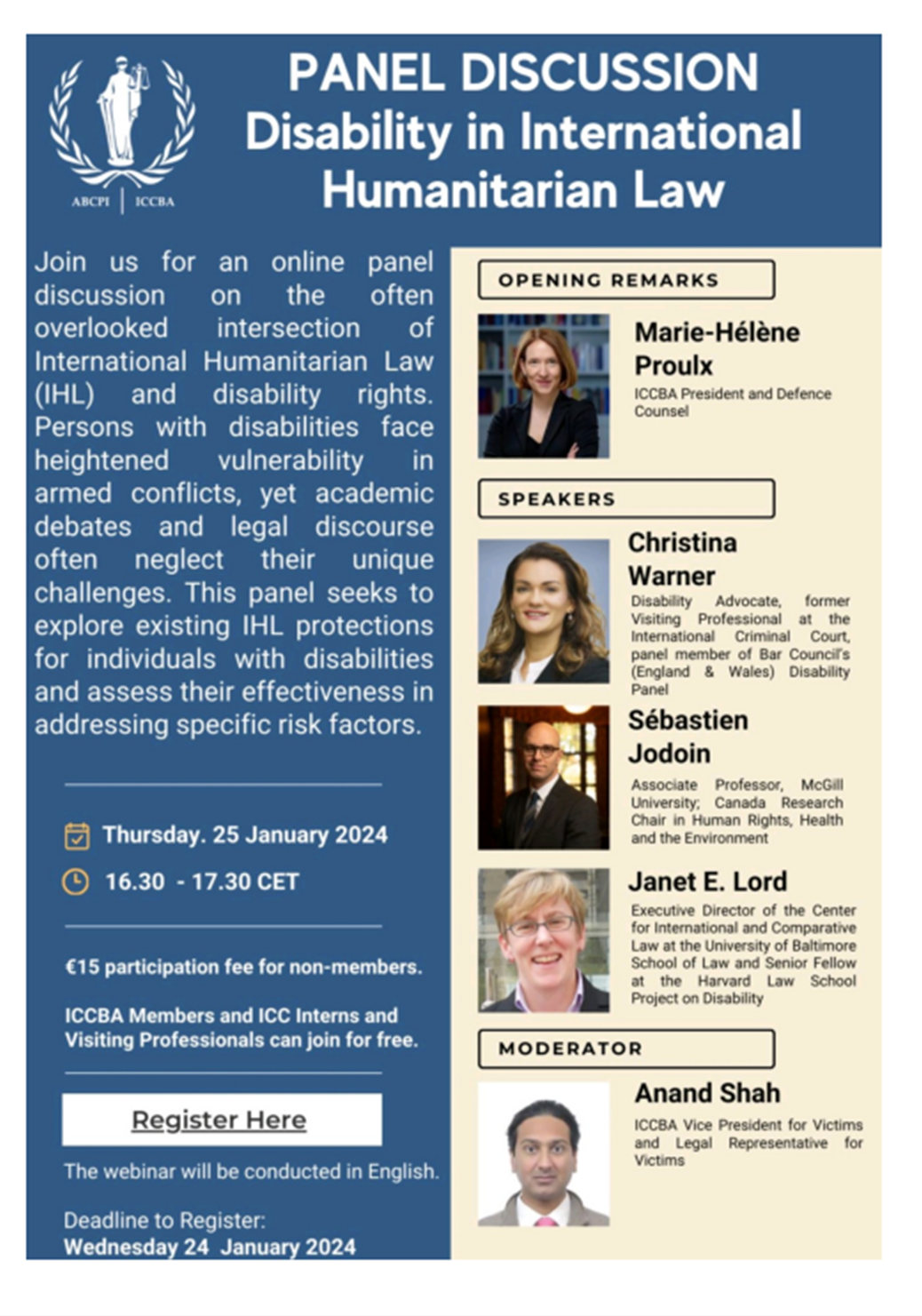 Christina Warner will be speaking at the ICCBA's 'Disability in International Humanitarian Law' Online Panel