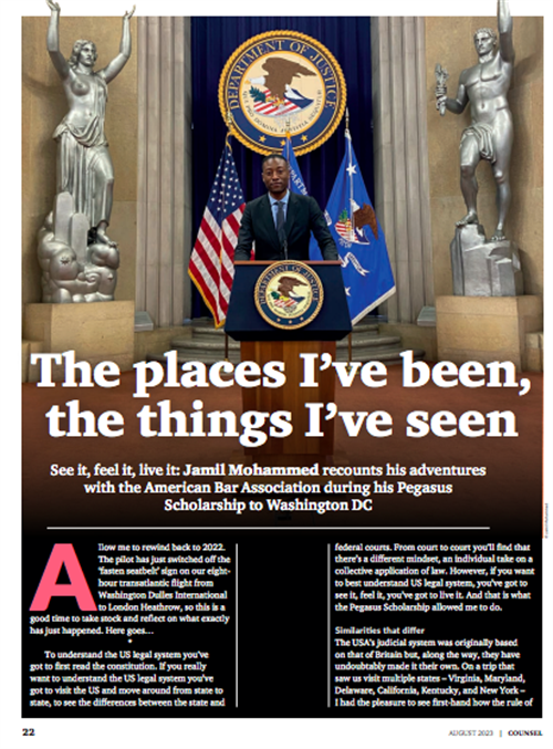 'See it, feel it, live it: Jamil Mohammed recounts his adventures with the American Bar Association during his Pegasus Scholarship to Washington DC.'